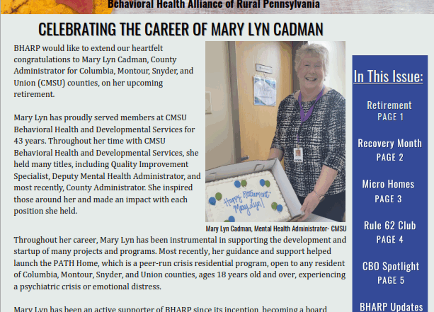 State College, PA – The Behavioral Health Alliance of Rural Pennsylvania (BHARP) and Community Care Behavioral Health Organization [...]